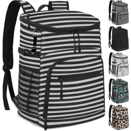 Cooler Backpack Insulated Leakproof Waterproof Backpack Cooler Bag 30 Cans, Large Capacity Lightweight Travel Camping Beach Drink Beverage Beer Bag Cooler Ice Chest for Men and Women, Stripe