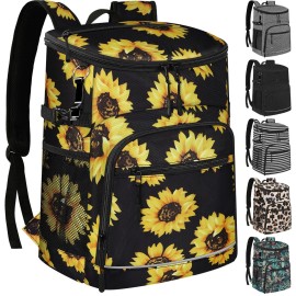Cooler Backpack Insulated Leakproof Waterproof Backpack Cooler Bag 30 Cans, Large Capacity Lightweight Travel Camping Beach Backpack Cooler Ice Chest for Men and Women, Sunflower