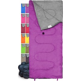 Lightweight Violet/Purple Sleeping Bag by RevalCamp. Indoor & Outdoor use. Great for Kids, Youth & Adults. Ultralight and Compact Bags are Perfect for Hiking, Backpacking, Camping & Travel.