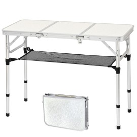Camp Aluminum Folding Table Weve designed the perfect Aluminum small folding tables for your Picnic, Camping, Party, BBQ. Compact. It adjusts to 2 heights :15 in low, 28 in high with the adjustable legs. And its ideal for tight spaces. Making your life easier. This table is sturdy and big enough to have a little stove on it and some plates. Thi..