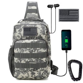 Valinov Tactical Shoulder Bag,Molle Shoulder Backpacks,Military Sling Daypack Backpack with USB Charging port (1 Pack Camo ACU)