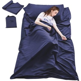 Mannice Sleeping Bag Liner Travel and Camping Sheet Lightweight Warm Roomy Compact Sleep Bag and Sack with Pillow Cover Soft for Hotel, Youth Hostels, Picnic,Hiking,Climbing 82.7 X 45 Inch,Dark Blue