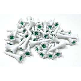 NorthPointe 1 Plastic Golf Tees - Short Tees for Irons, Par Threes, Hybrids, and Driving Range - Pack of 50 or 100 Bulk in High Visibility White Durable Plastic (50, Combo Shamrock & Flag, 1 1/2)