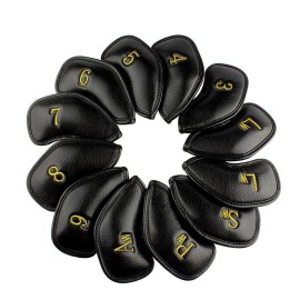 Craftsman Golf 12pcs Thick Synthetic Leather Golf Iron Head Covers Set Headcover Fit All Brands Callaway Ping Taylormade Cobra Etc. Also Custom Name (12pcs Black with Gold No.)