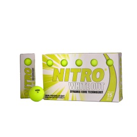 The Nitro White Out Golf Balls have proprietary white hot core technology which maximizes the energy transfer from club head to golf ball. Aerodynamic and symmetrical dimple design increases lift and decreases drag for higher, longer shots. peak performance, exceptional spin control with long distance off your woods. Improved smash factor makes thi..