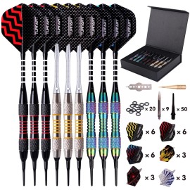 Darts Plastic Tip - Professional Soft Tip Darts Set for Electronic Dartboard 9 Pcs 18 Grams with 50 Extra Tips 9 Shafts 27 Flights Tool Kit Flight Protectors and Gift Darts Case..