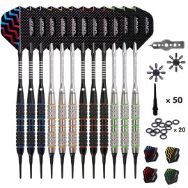 Turnart Darts Plastic Tip - Professional Soft Tip Darts Set for Electronic Dartboard 12 Pcs 18 Grams with 50 Extra Tips 24 Flights 2 Flight Protctors and Tool Kit Gift Darts (New)