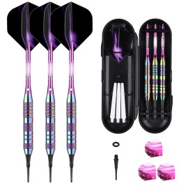 sanfeng Soft Tip Darts Set 20 Grams with Purple Aluminum Shafts Extra 50 Rubber O-Rings 30 Darts Plastic Tip 6 Standard Flights Slim Case for Electronic Dart Board