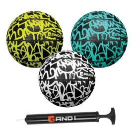 AND1 Fantom Graffiti 28.5 Rubber Basketball - Intermediate Streetball for Indoor/Outdoor Play, Size 6 Includes Pump