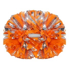 Hooshing 2PCS Orange and Silver Pom Poms Cheerleading with Baton Handle for Team Spirit Sports Dance Cheering Kids Adults