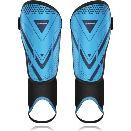 Upgraded Soccer Shin Guards for Kids Youth Adults, CE Certified AirsFish Shin Guard Sleeves Protection Gear for Boys Girls Soccer Games EVA Cushion Reduce Shocks and Injuries (Blue-XXS)