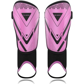 Upgraded Soccer Shin Guards for Kids Youth, CE Certified AirsFish Shin Ankle Guard Sleeves Protection Gear for Boys Girls Soccer Games EVA Cushion Reduce Shocks and Injuries (XX-Small, Pink)