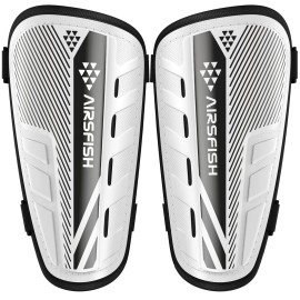 Shin Guards Soccer Kids Youth, CE Certified AirsFish Shin Guard Protection Gear for 2-18 Years Old Boys Girls Teenagers High Impact Resistant Breathable Comfortable (S Plus, White+Black)