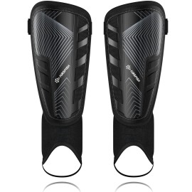 Upgraded Soccer Shin Guards for Kids Youth Adults, CE Certified AirsFish Shin Guard Sleeves Protection Gear for Boys Girls Soccer Games EVA Cushion Reduce Shocks and Injuries (Medium, Black)