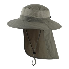Home Prefer Outdoor UPF50+ Mesh Sun Hat Wide Brim Fishing Hat with Neck Flap (Light Vert Khaki)