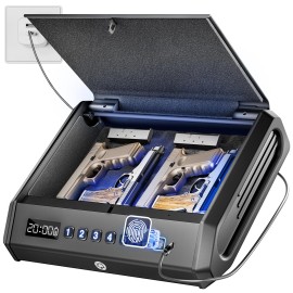 TOPMEDA Biometric Gun Safe - 100 Fingerprints, 3-Ways Unlock Large Handgun Lock Box fits 4 Pistols, Silent Mode & Emergency Power for Home Nightstand & Car