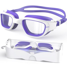 Zeligerstar Kids Swim Goggles,Swimming Goggles for Kids 6-14, Anti-Fog UV Protection Pool Glasses for Boys Girls (Purple/White+Clear Lens)
