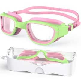 Zeligerstar Kids Swim Goggles,Swimming Goggles for Kids 6-14, Anti-Fog UV Protection Pool Glasses for Boys Girls (Grass Green/Pink+Clear Lens)