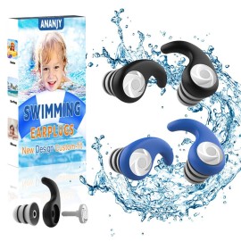 Waterproof Swimming Ear Plugs for Kids - 2 Pairs of Reusable Soft Silicone Swim Earplugs,Ear Protection for Children (4-12 Years Old) - Ideal for Surfing, Diving, Pool, Showering, and Water Sports
