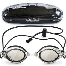 Proswims Anti-Fog Racing Swimming Goggles with Bungee Strap, Hard Case and Bonus Swim Goggles Microfiber Cleaning Cloth