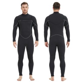 Lemorecn Mens Surfing Wetsuit Neoprene 3/2mm Chest Zip Full Wetsuit for Men(MC0301-3XL)
