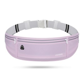 USHAKE Slim Running Belt, Workout Fanny Pack for Men Women,Exercise Waist Pack for Apple iPhone Holder, Runner Belt for Running Walking Cycling Camping Gym Light Pink