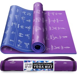 Grand Basics Instructional Yoga Mat For Men, Extra-Thick Yoga Mat, Non-Slip Yoga Mat - Great Yoga Mat For Beginners with 75 Illustrated Yoga Poses + 75 Easily-Followed Stretching Exercises Printed On It - Yoga Mat Set Includes 1x Yoga Mat with Instructions & Yoga Mat Carrying Strap - Perfect For Kids & Teens..