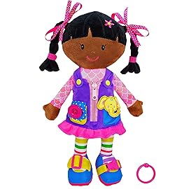 Here comes the Dressy Friends Scarlett! With a variety of different built in dressing accessories, the cuddly educational plush doll is a perfect gift for toddlers and preschoolers ages 2 and up. Featuring 7 main getting dressed activities, Scarlett keeps your kids busy practicing skills while playing. Your baby kids will first learn to recognize t..