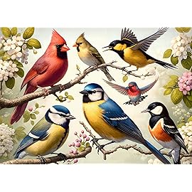 Rocorose 1000 Piece Puzzle for Adults, Colorful Birds and Flowers Puzzle with Exquisite Poster, Challenging Spring Garden Animal Songbirds Cardinals Puzzles Game