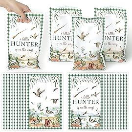 ArianQicult 50Pcs Mallard Duck Baby Shower Party Favor Bags, A Little Hunter Is On The Way Plastic Goody Candy Treat Bags Party Decorations for Boys Girls Baby Shower Birthday Supplies