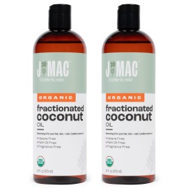 J Mac Botanicals, Organic Fractionated Coconut Oil (32 oz - 2 Pack 16 Ounce Bottles) Carrier Oil for diluting Essential Oils, Hair and Skin Conditioner, Massage