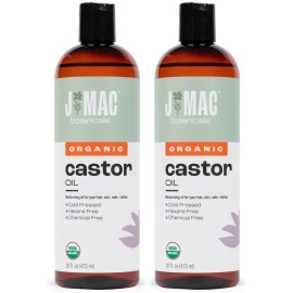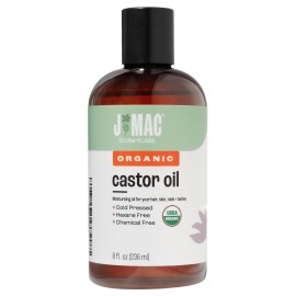 J Mac Botanicals Organic Castor Oil (8 oz) Cold Pressed, BPA Free, Castor hexane free, for face, skin, eyelashes, Certified USDA Organic