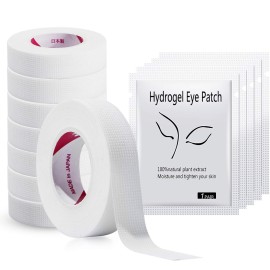 JASSINS 8 Rolls Eyelash Tape, Adhesive Fabric Eyelash Tapes, Adhesive Breathable Micropore Fabric Tape for Eyelash Extension Supply,9 m/10 Yard Each Roll (8 Rolls of White + 5 Eye Stickers)