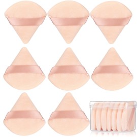 8 Pcs Cotton Powder Puff Face,JASSINS Triangle super soft for Both dry and wet Makeup Setting/Concealer/Loose and Body Powder/Foundation/Blush Makeup Sponge Set (Pink)