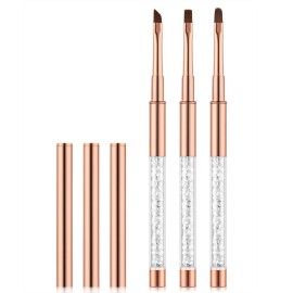 JASSINS Nail Art Clean Up Brushes, 3 Pcs Flat/Oval/Fine Angled Gel Nail Brushes,For Nail Art Design Painting DIY and Cleaning Polish Mistake on the Cuticles (Copper)