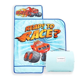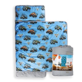 Jay Franco Kids Nap Mat Cartoon Embedded Pillow & Blanket - Soft 46x20Microfiber Sleeping Bag with Name Tag & Handle for School, Travel, Sleepover, Purple - Monsters Inc