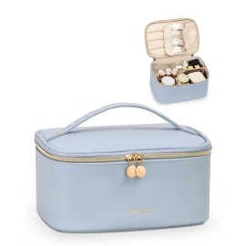 KomalC Premium Buffalo Leather Roll Toiletry Bag Travel Dopp Kit (Ink Blue)