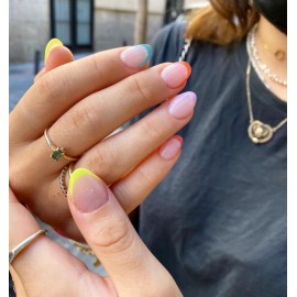 KXAMELIE Rainbow Fake Nails - Short Almond Press On Nails With Colorful French Tips, Natural Nude Full Cover Glue On Nails Set for DIY Style