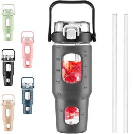 - ❤Glass Water Bottle with Pop-up Straw Lid- Kytffu large 42oz water bottle with straw is designed with an upgraded lid that ensures 100% leakproof and dustproof. Advanced one-click button makes you drink easier, just push the button and the straw will pop out automatically. | ❤Glass Bottle With Time Marker- Time markers and water capacity markers on the glass bottles. Great for measuring your daily intake of water and a reminder to drink the perfect amount of water each day. Large capacity lets you not refill it frequently anymore. | ❤High-Quality Borosilicate Glass Bottle- This large motivationla water bottle is made of odorless, quality, borosilicate glass. Straw and lid are made of food-grade PP, BPA-free and eco-friendly. | ❤More Function- Our glass water bottle with stylish silicone sleeve which provides more grip and prevents the water bottle from slipping out. -This large motivational water bottle has a wide mouth, not only easy to hold ice cubes and fruit but also very easy to clean, you can use our complimentary cup brush to clean your water glass. -Handle on the lid for easy portability. | ❤Good for Home and Outdoors- Suitable for swimming, Sports, Travel, Road trip, Barbecue, Camping, parties, etc. You can share them as gifts onMother's Day, Father's Day, birthdays, Thanksgiving, and Christmas with your family, friends, peers, teachers, and colleagues.