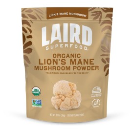 Laird Superfood Organic Lions Mane Mushroom Powder for Cognitive Function and Immune Support, 3.17 oz. Bag, Pack of 1