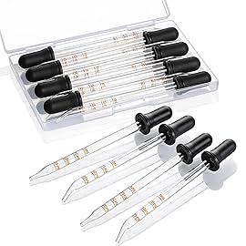 8 Pack, 1 mL Glass Eye Dropper with Measurement - 5.2inch Long Bent & Straight Tip Calibrated Glass Medicine Droppers, Accurate Dose Pipette Dropper for Essential Oils, Feeding, Ear, Lab, Health Care..