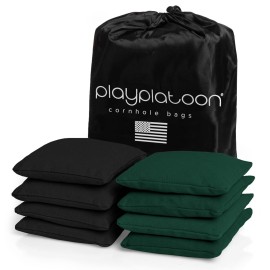Play Platoon Weather Resistant Cornhole Bags - Set of 8 Regulation Corn Hole Bean Bags - Hunter Green & Black - Durable Duck Cloth Corn Hole Bag for Tossing Game, Includes Tote Bag