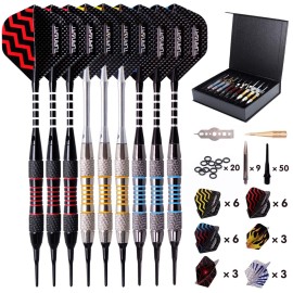 Darts Plastic Tip - Professional Soft Tip Darts Set for Electronic Dartboard 9 Pcs 18 Grams with 50 Extra Tips 9 Shafts 27 Flights Tool Kit Flight Protectors and Gift Darts Case..