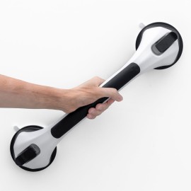 LEVERLOC Grab Bars for Bathtubs and Showers, 17inch Handicap Grab Bars with Two Suction Cups, Easy to Install & Remove Bathroom Shower Grab Bar for Seniors, Suction Shower Handle for The Elderly, Gray..