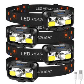 LHKNL Headlamp Flashlight,4-Pack Lumen Ultra Bright LED Rechargeable Headlight with White Red Light,Waterproof Motion Sensor Head Lamp,8 Mode for Outdoor Camping Running Cycling Fishing