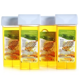 Honey Roll-On Wax, Depilatory Wax Roller Refill, Roller Waxing Kit, Hair Removal Wax Soft Wax Roller, Wax Cartridge Refill for Body Waxing, Leg and Arms 3.52 Ounce (4 Pack)..
