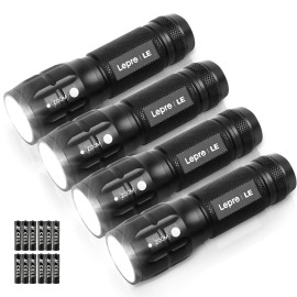 Lighting EVER LED Flashlights High Lumens, Small Flashlight, Waterproof, Adjustable Focus Flash Light for Outdoor, Emergency, Camping, AAA Batteries Included, 4 Pack
