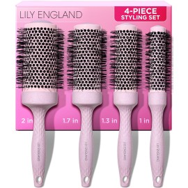Lily England Round Blow Dry Brush Set for Women - Perfect for Voluminous Blowouts - Ceramic Ionic Technology - Luxury Gift for Her (Pink)