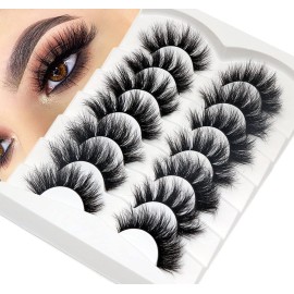 Losha Lashes Pack 7 Pairs Fluffy Faux Mink Eyelashes Soft Handmade False Eye Lashes for Dramatic Makeup