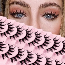 Losha Lashes Fluffy Cat Eye Lashes Wispy Fake Eyelashes Soft Fox Eye False Lashes that Look Like Extensions 7 Pairs Reusable False Eyelashes (704)